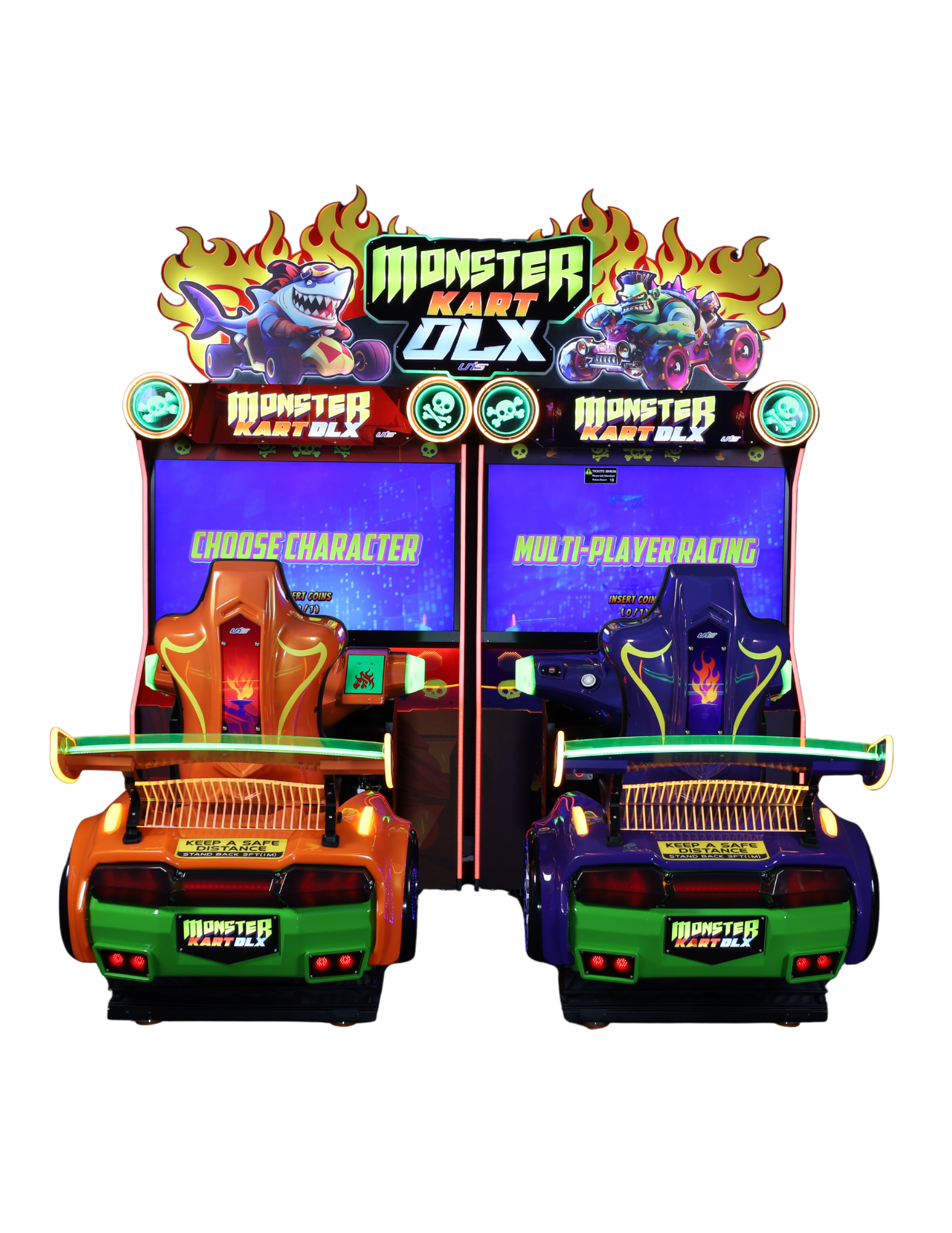 Monster Kart DLX Twin is a high-energy, two-player racing game that brings over-the-top characters, wild tracks, and full-throttle action to your game room. Built to attract attention and built for performance, this deluxe arcade racer is packed with vibrant visuals, interactive features, and competitive gameplay that keeps players coming back for more.